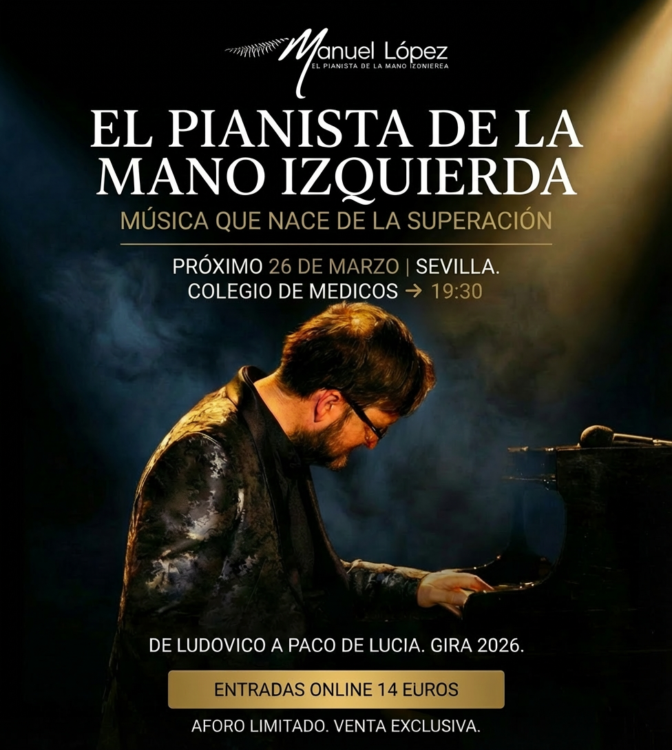 Manuel López lleva años recorriendo España con un concierto que no se parece a ningún otro. No es un recital al uso. Es un acontecimiento. Una experiencia en la que la música más grande de todos los tiempos y la emoción más pura se funden en un único acto que el público no olvida —y que se interpreta íntegramente con una sola mano.